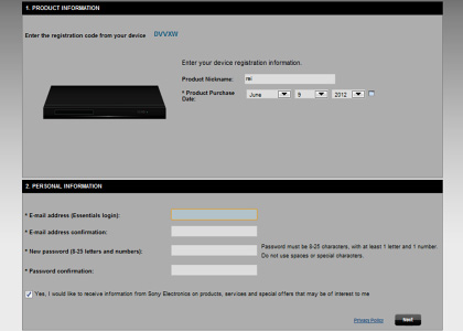 Geben Sie den Registrierungs-Code Ihres Gerätes ein.
